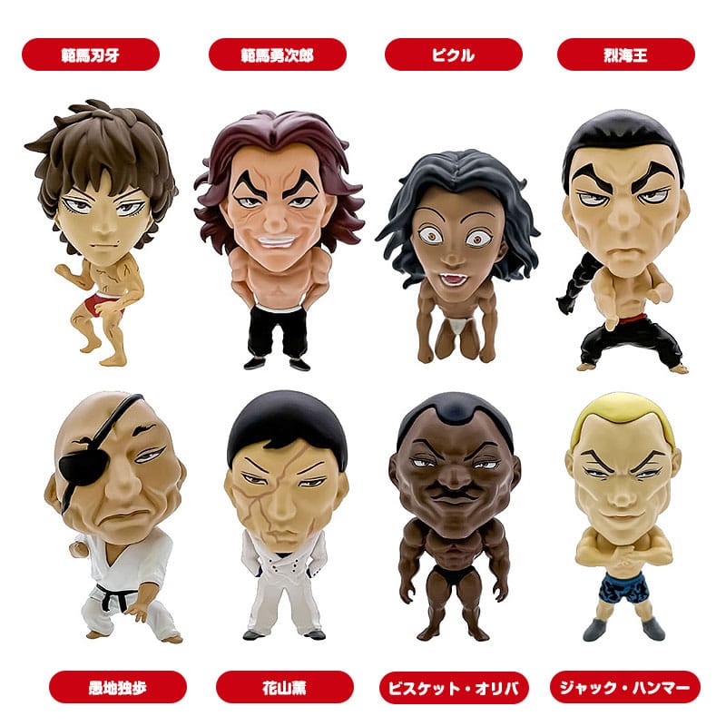 Zum Anime ´Baki Hanma´ kommt dieser Pack mit 8 Minifiguren. Die detailreichen, PVC Figuren sind ca. 6 cm gross.