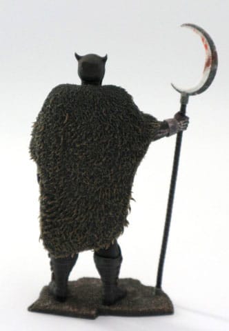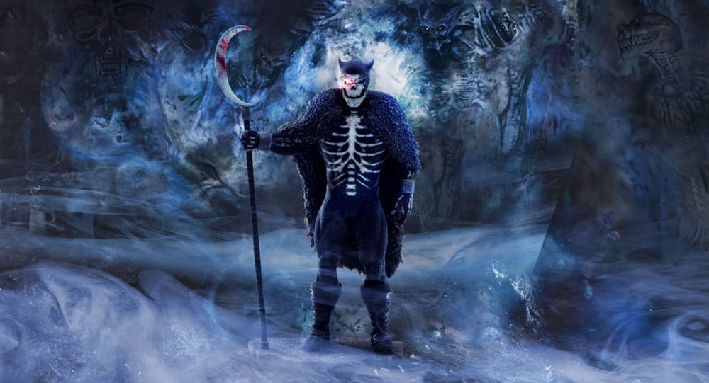 An dieser Darstellung orientiert sich das Design der Statue Skullman. Liam Sharp ist für seinen detaillierten und dynamischen Zeichenstil bekannt. Von der Stiefelschnalle bis hin zu den grausamen Krallen bildet die Statue präzise die nordische Version des Sensenmanns nach getaner Arbeit ab. Man sieht sogar noch das frische Blut von der Sichel tropfen. Im Massstab 1/12 gehalten, wird die Statue durch ein hochwertiges Kartondiorama mit passendem Hintergrund ergänzt, was die Atmosphäre und den Horror des Designs weiter verstärkt.