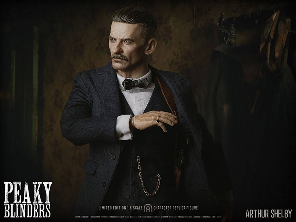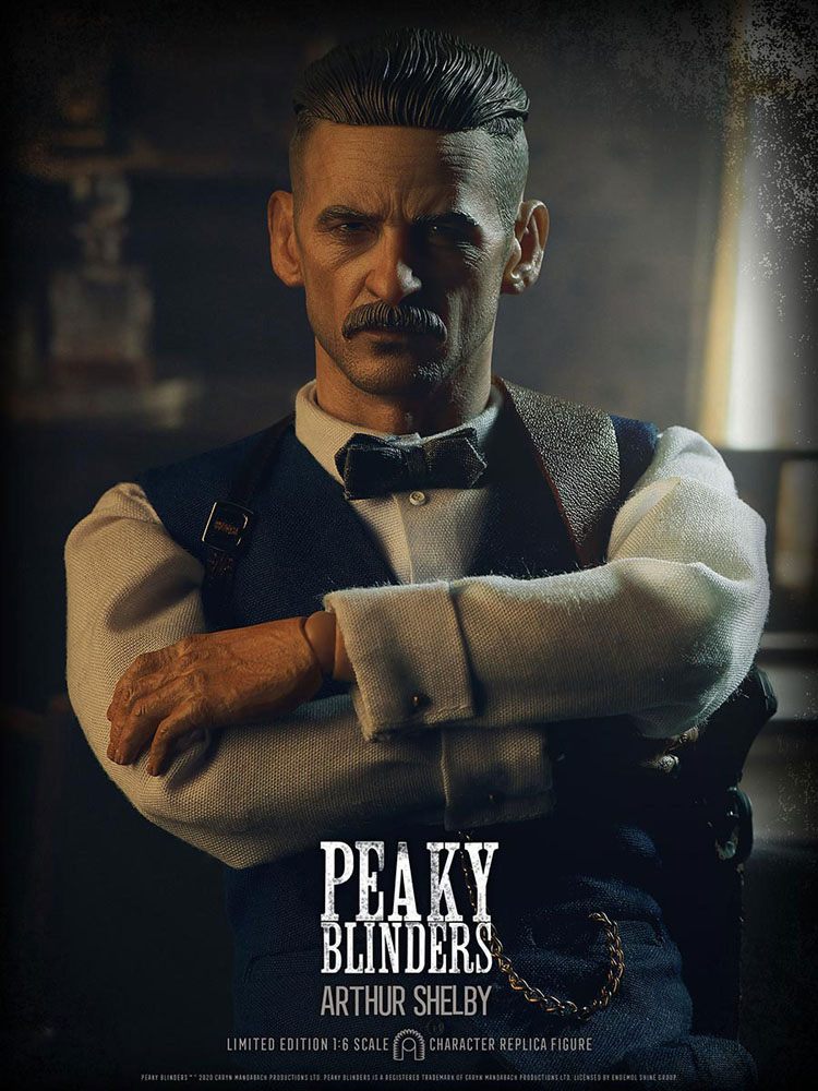 Big Chief Studios präsentiert diese großartige Actionfigur aus der TV Serie „Peaky Blinders“. Das im Maßstab 1/6 gehaltene Sammlerstück ist ca. 30 cm groß, trägt echte Stoffkleidung und kommt mit zahlreichen Austausch- und Zubehörteilen in einer schicken Fensterbox.
