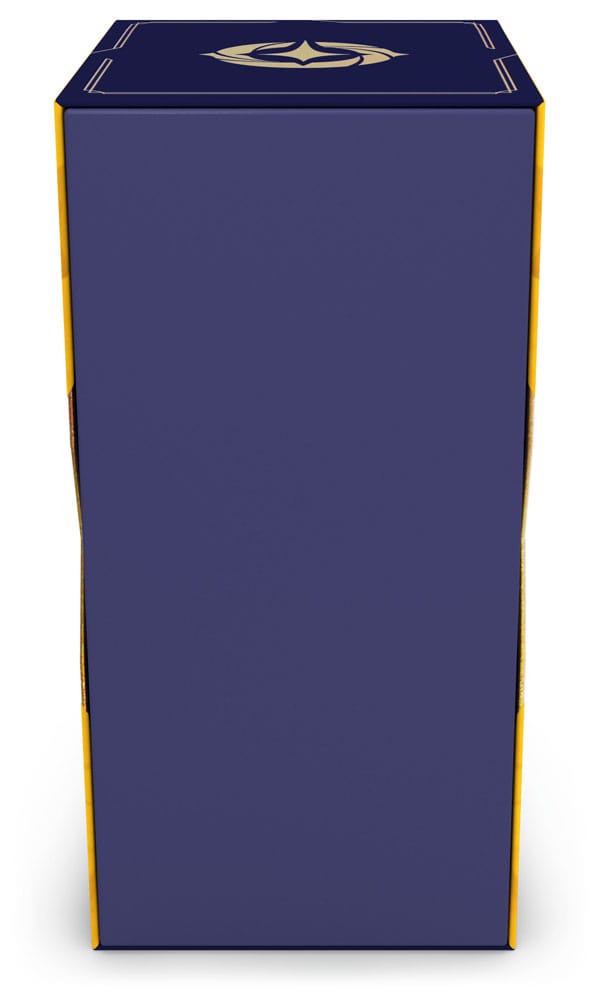 befindet sich in einer illustrierten Aufbewahrungsbox, die bis zu 250 Karten in Kartenhüllen sicher aufbewahren kann.