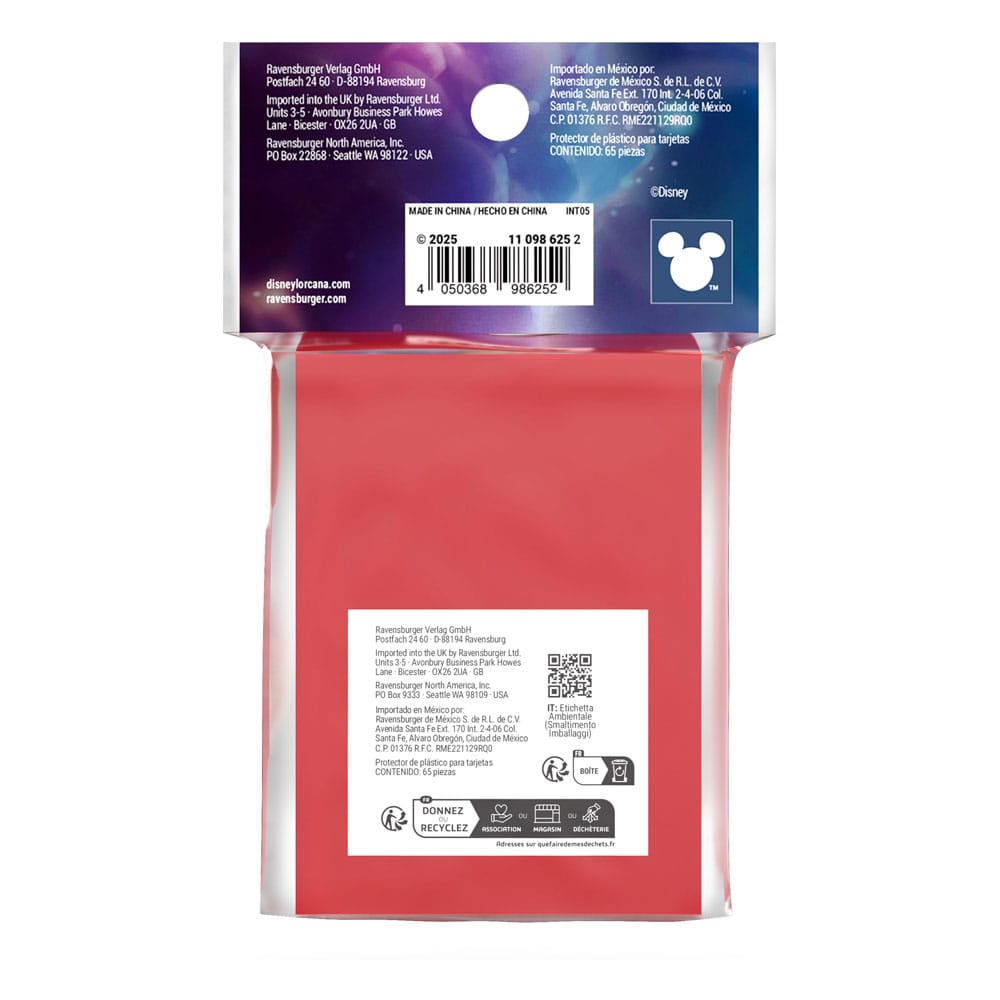 Jede Packung enthält 65 Kartenhüllen mit Motiven eines Disney Lorcana Glimmers.