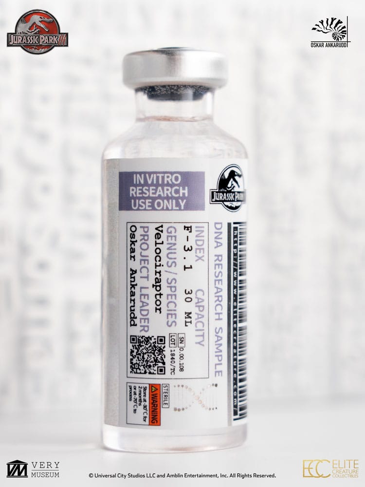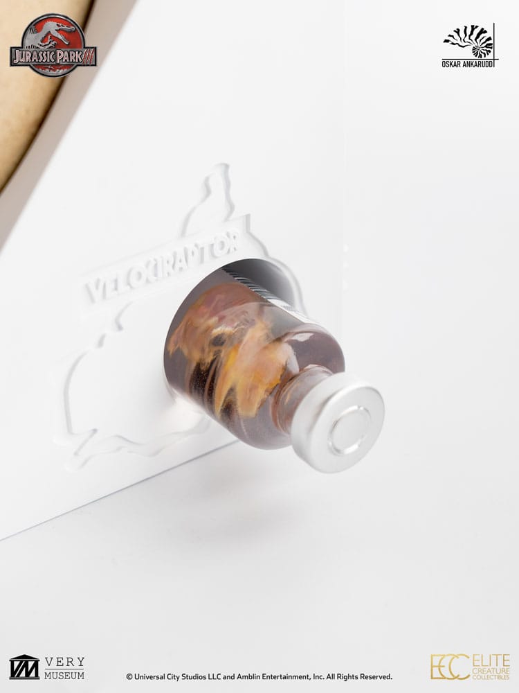 Als Bonus erhalten alle Sammler eine weibliche Velociraptor-Embryo-Probe, eine einzigartige Ergänzung, die Ihre gesamte Jurassic Park-Sammlung aufwertet.