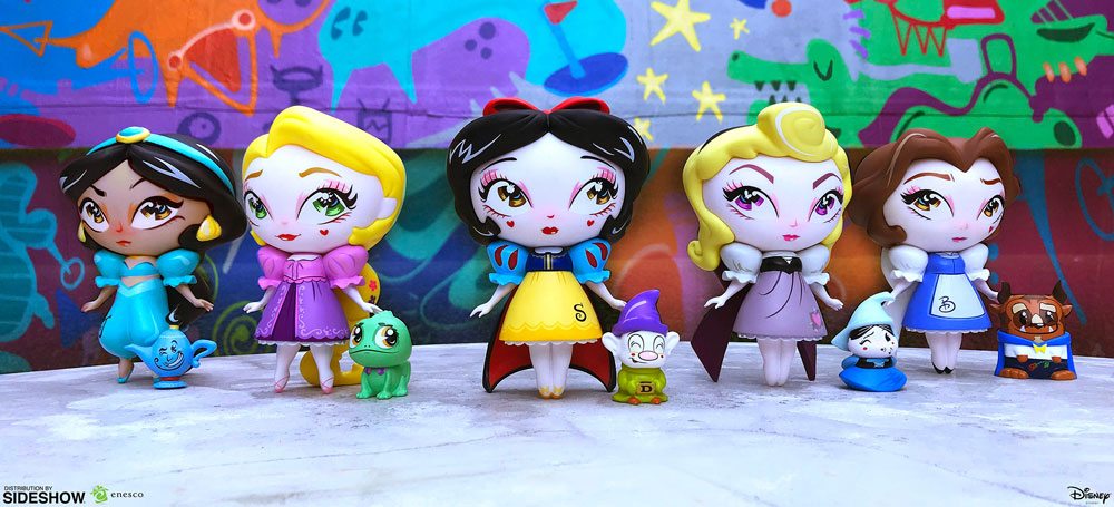 Dieses Set beinhaltet 5 Vinyl-Statuen von Disney-Prinzessinnen aus der „Miss Mindy“-Kollektion. Sie sind ca. 18 cm groß.
