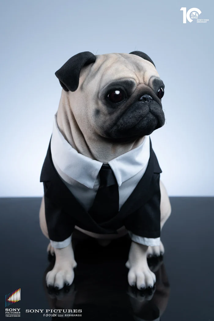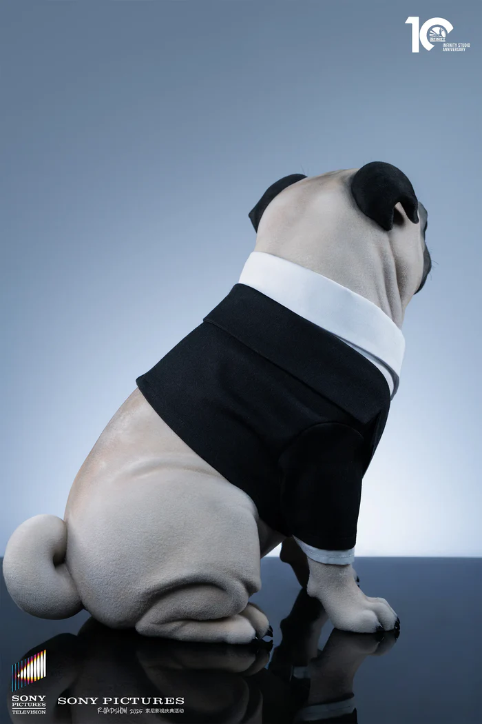 Als Sammlerstück in Lebensgröße verfügt sie über einen filmgetreuen Kopf mit klar definierten Falten und speziell angefertigten Prothesenaugen. Dank des Vinyls mit Samtfinish bildet die kurze Felltextur der Figur einen subtilen Kontrast zum maßgeschneiderten schwarzen Anzug.