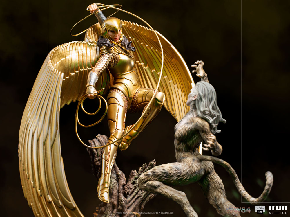 Zum Film „Wonder Woman 1984“ kommt diese offiziell lizenzierte Statue aus Resin. Die im Maßstab 1/10 gehaltene Statue ist ca. 23 x 10 x 17 cm groß und wird mit passender Base in einer bedruckten Box geliefert.