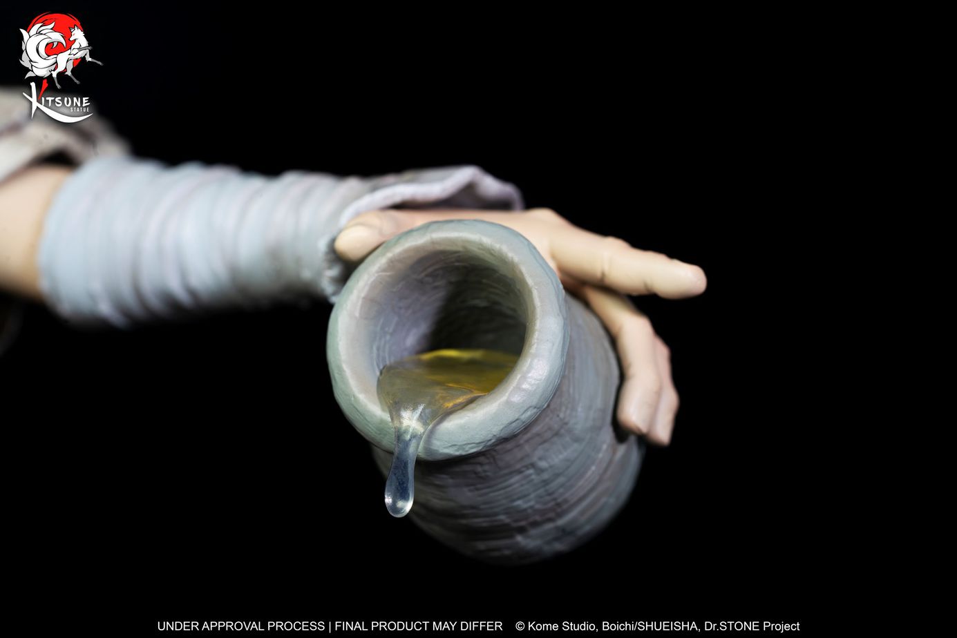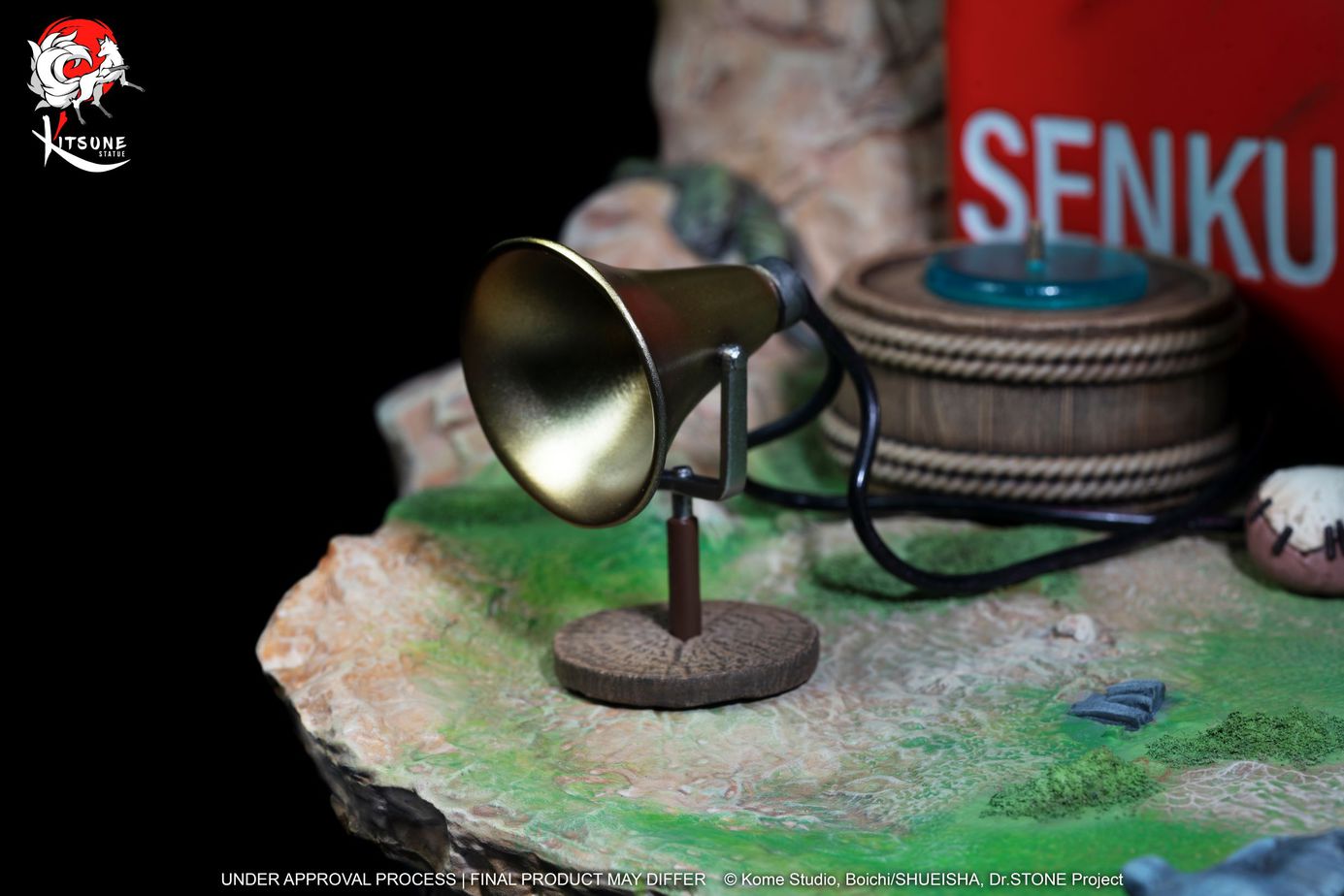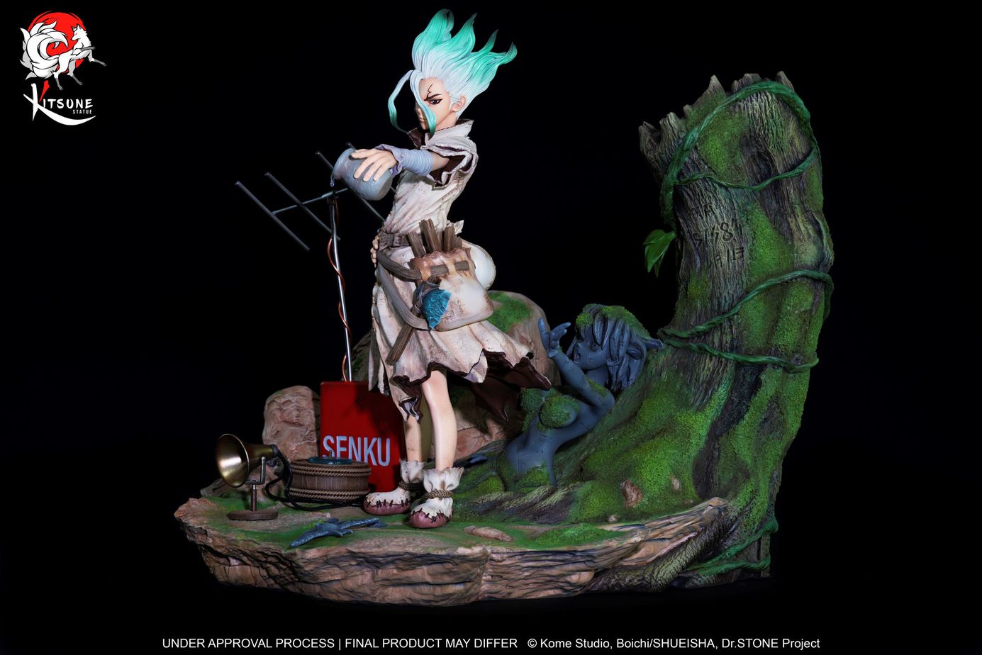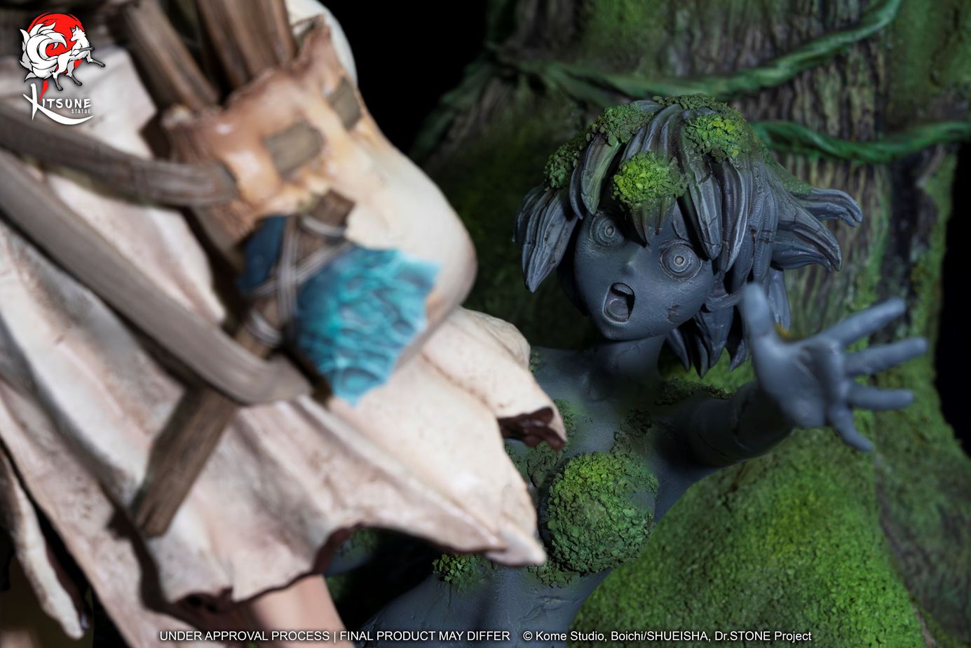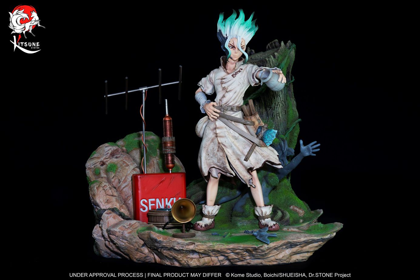 Für diese erste Statue aus der Dr. Stone-Lizenz setzt Kitsume direkt auf den brillanten Senku Ishigami. Senkus Entschlossenheit und Selbstvertrauen ist in seinem Gesicht eindeutig zu spüren. Die gewählte Umgebung repräsentiert perfekt die Stimmung von Dr. Stone: Eine Welt, die nach einem mysteriösen Ereignis, das die Menschheit in einen Felsen verwandelte und somit in die Steinzeit zurückkehrte.