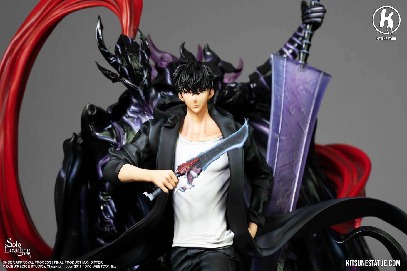 Zum Anime ´Solo Leveling´ kommt diese detailreiche Statue aus Resin, PVC und PU. Sie ist ca. 46cm x 31,5cm x 47cm groß und wird mit ansprechender Base in einem styropor-geschützten Karton geliefert.