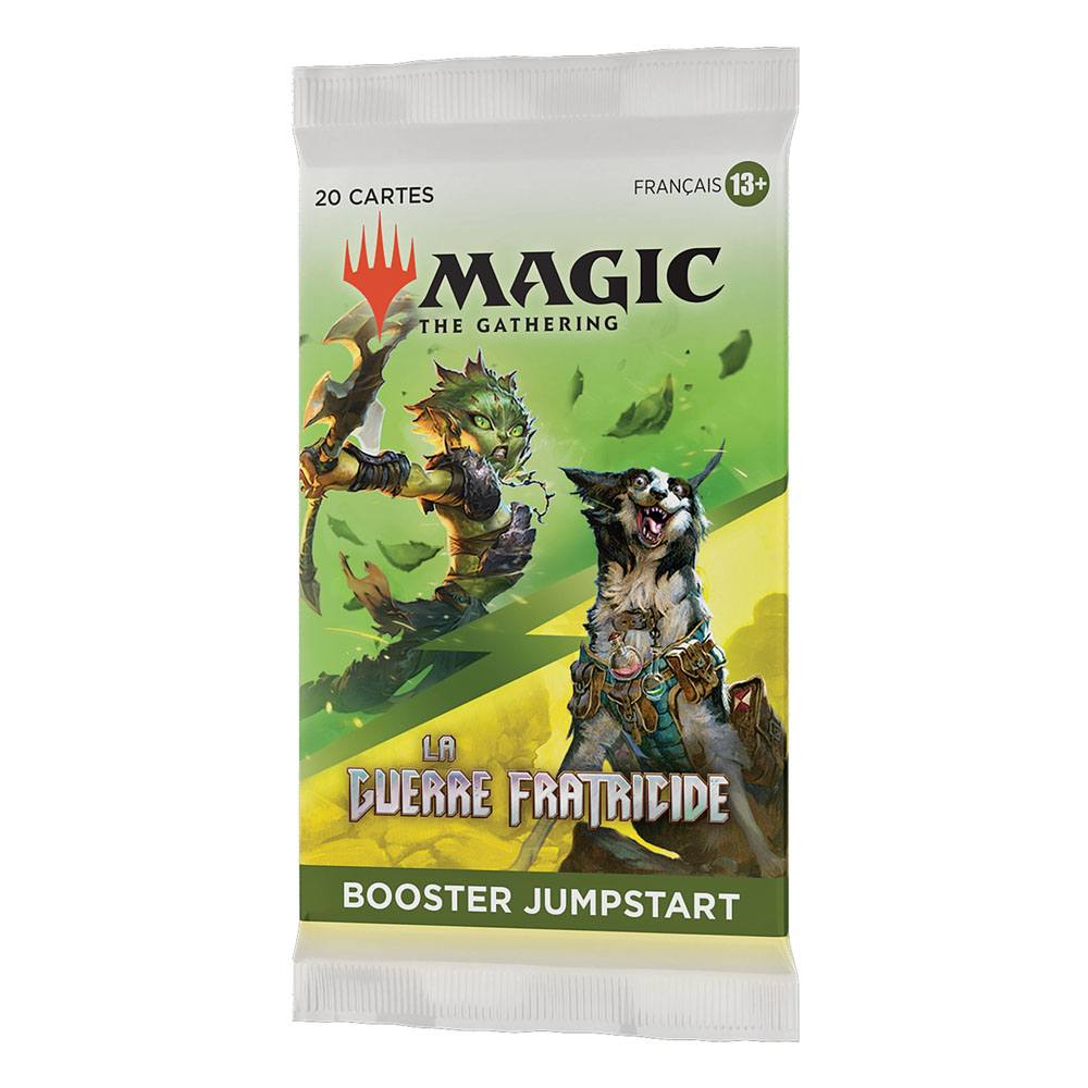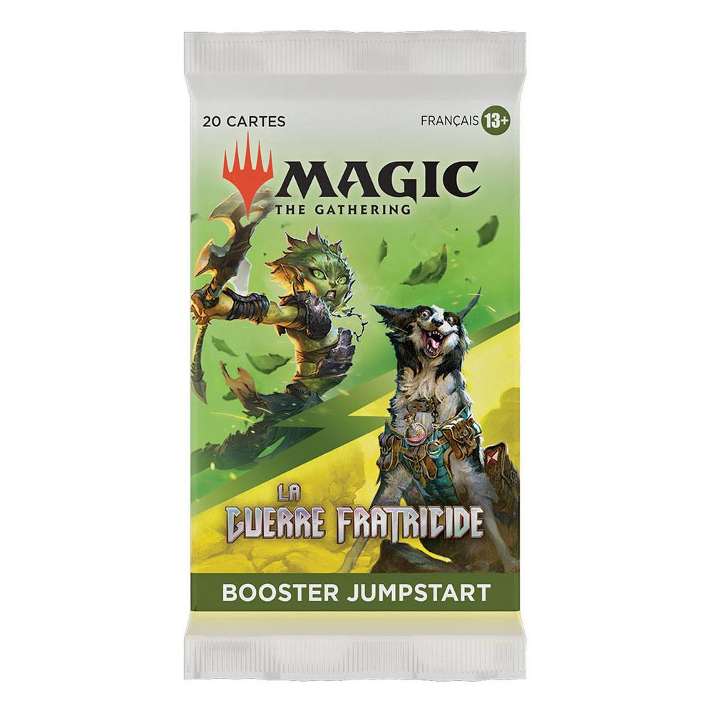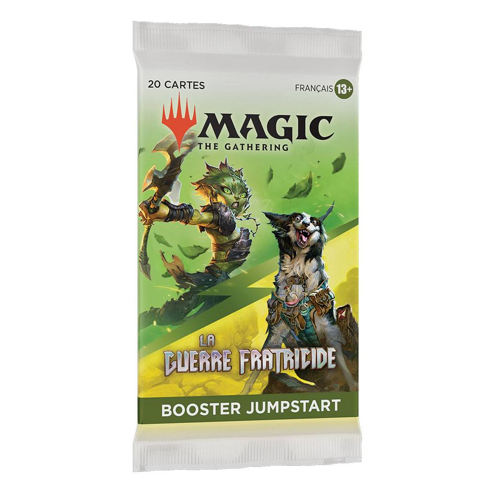 Krieg der Brüder Jumpstart-Booster enthalten 20 Magic-Karten (darunter alle zum Spielen benötigten Länder). Jeder Booster enthält 2 seltene Karten, von denen 1 sagenhaft selten sein kann, und 2 Länderkarten als traditionelle Foilkarten.