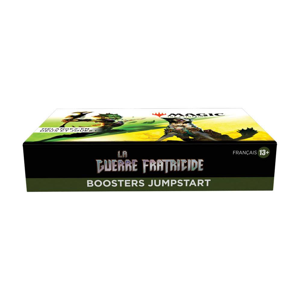 Ein Krieg der Brüder Jumpstart-Booster-Display enthält 18 Krieg der Brüder Jumpstart-Booster. Jeder Booster hat ein Thema. Schnappe dir einfach zwei Booster und mische sie für wilde Kombinationen und ein einzigartiges Spielerlebnis zusammen. Ideal für eine schnelle, lässige Partie, für ältere Spieler, die wieder einsteigen möchten, oder für neue Spieler, damit sie das Spiel auf spassige, einfache Weise erlernen können.