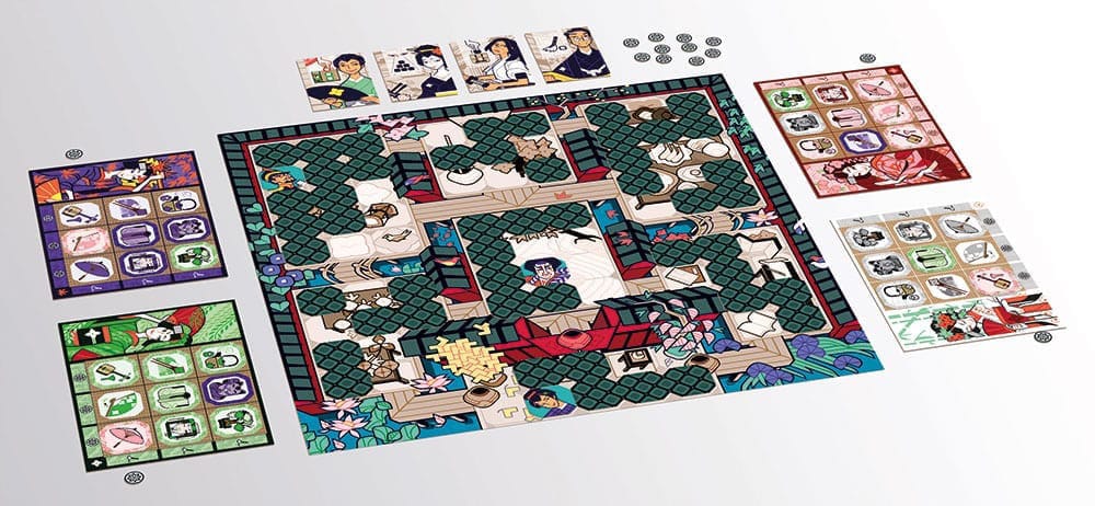 When you reveal a pair of tiles with the same items, it means that you learned one of the nine arts of the geishas! Possessing tiles of your maiko’s color increases your points. Conversely, possessing tiles of other colors decreases your points. Indeed, Maiko is a game of memory but also elegance!