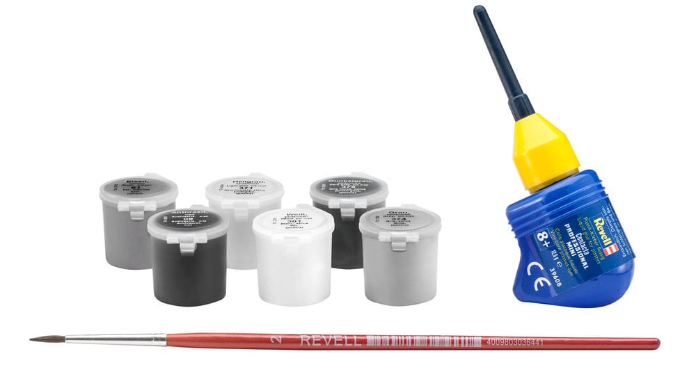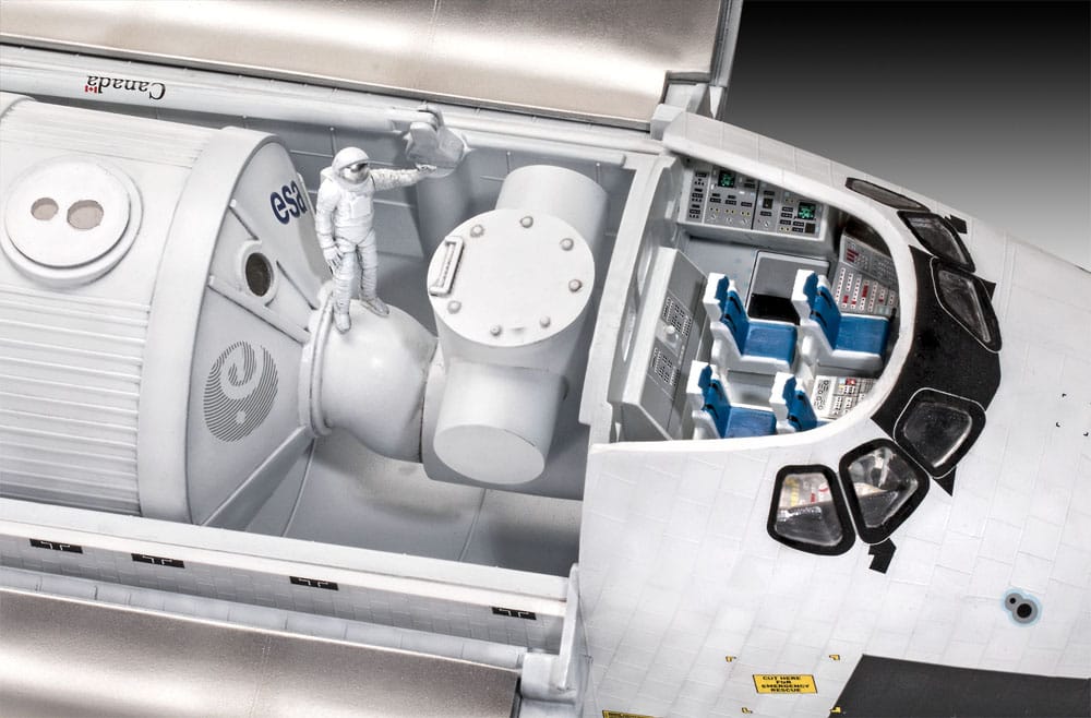 Neben Basisfarben sind auch Kleber und Pinsel enthalten. Geschenkset zum 40-jährigen Jubiläum zu der von der NASA entwickelten Space Shuttle. Die Space Shuttle bestand aus den Komponenten Raumfähre (Orbiter), externem Treibstofftank und zwei Feststoffraketen. Massstab 1/72. 111 Teile. 48,9 cm Länge. Geeignet ab 13 Jahren.