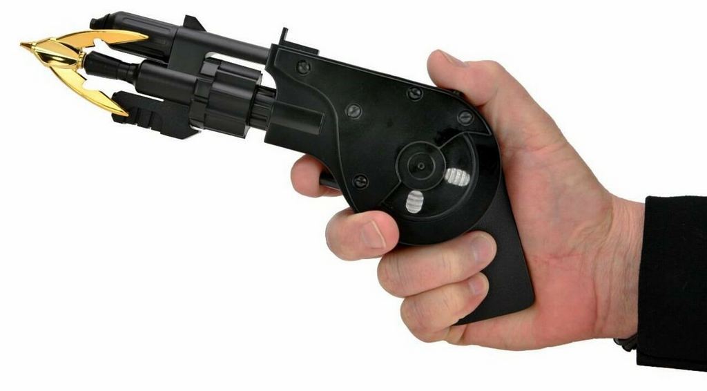 Zum TV-Klassiker „Batman“ kommt diese offiziell lizenzierte und originalgetreute Nachbildung von Batmans Grapnel Launcher. Er ist ca. 18 cm lang und wird in einem bedruckten Karton geliefert. Per Knopfdruck rollt sich das Seil nach einem Abschuss wieder automatisch auf.
