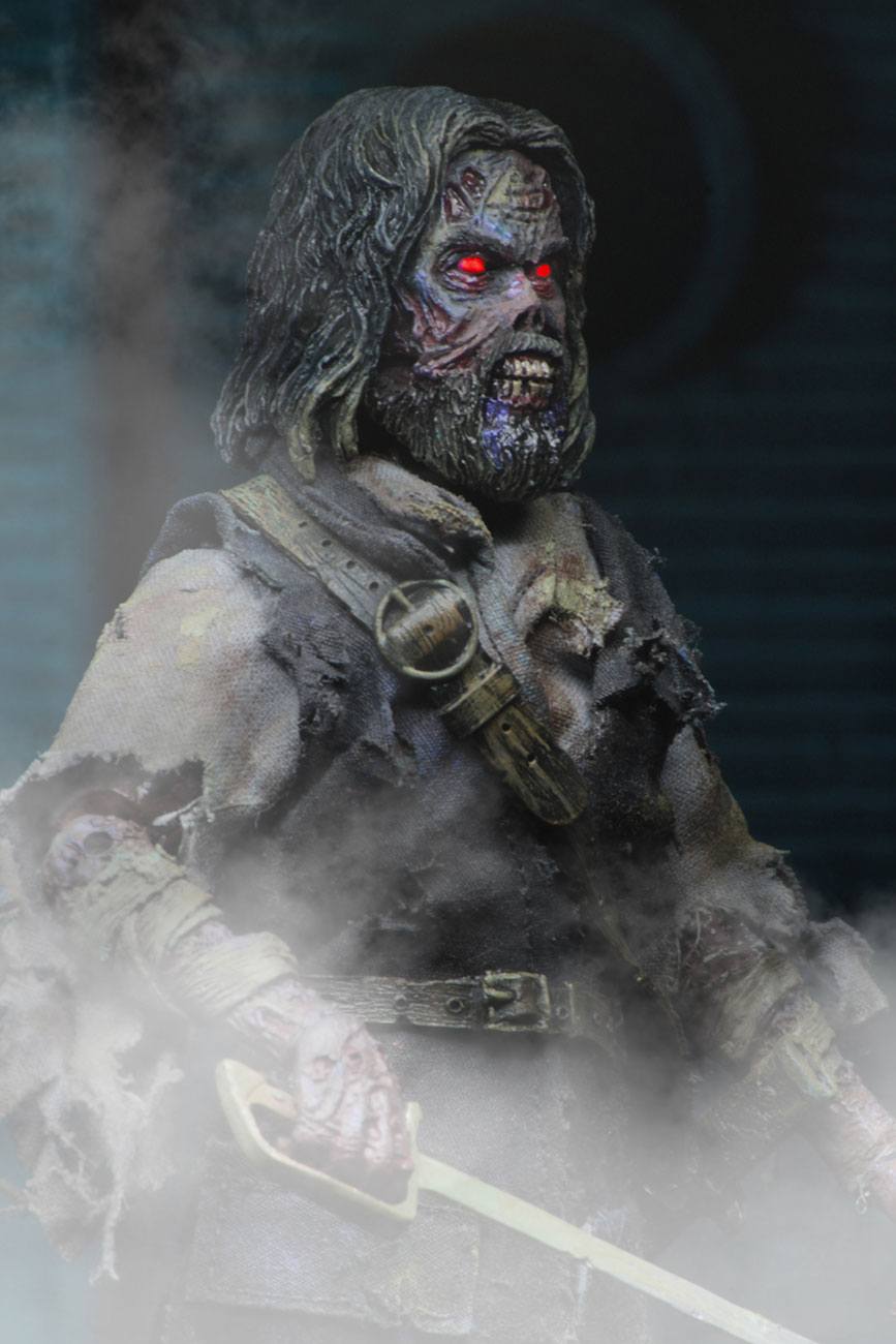 Zum John Carpenters Klassiker „The Fog – Nebel des Grauens“ kommt diese coole Figur von Captain Blake im Retro-Look. Sie ist ca. 20 cm groß und trägt echte Stoffkleidung. Sie verfügt außerdem über eine LED-Leuchtfunktion in den Augen.