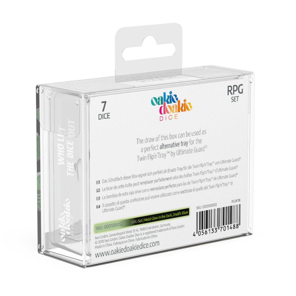 Oakie Doakie Dice: Oakie Doakie Dice Würfel RPG-Set Metal Glow in the Dark – Druid’s Blaze (7)