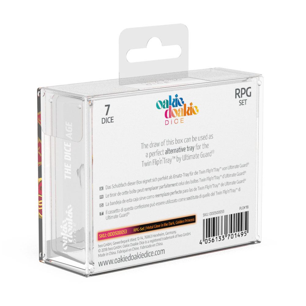 Oakie Doakie Dice: Oakie Doakie Dice Würfel RPG-Set Metal Glow in the Dark – Golden Princess (7)