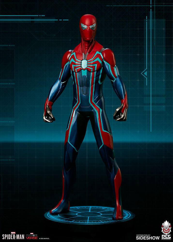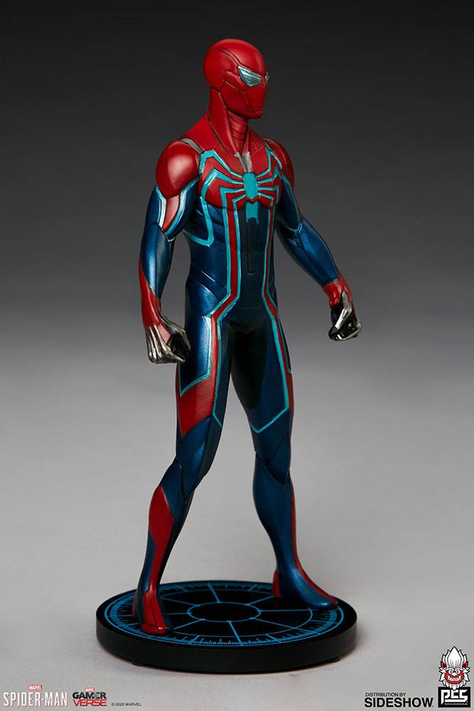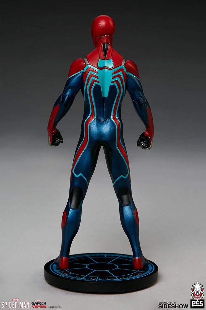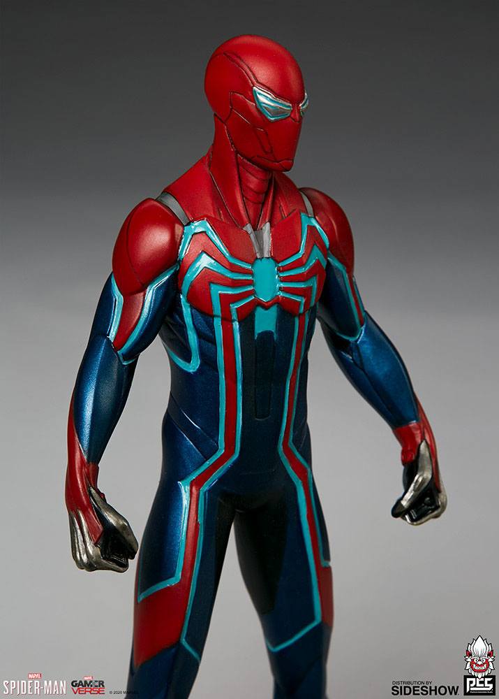 Pop Culture Shock präsentiert diese detailreiche Statue von Spider-Man in seinem Velocity Suit aus dem Videospiel „Marvel’s Spider-Man“.
