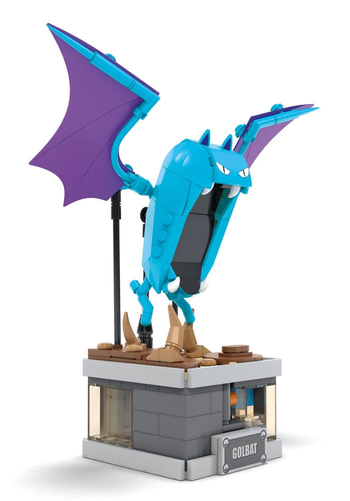 Die Motion Pokémon Bausets gibt es jetzt auch im Mini-Format. Einfach das Modell zusammenbauen und auf den versteckten Knopf drücken, schon schlägt Golbat mit den Flügeln. Das Set ist ca. 13 cm gross und hat somit die perfekte Grösse für den Schreibtisch oder das Nachtkästchen. Dieses Set kann mit anderen Mini Motion- oder Standard Motion-Sets kombiniert werden, um eine beeindruckende MEGA Pokémon-Sammlung zu schaffen.