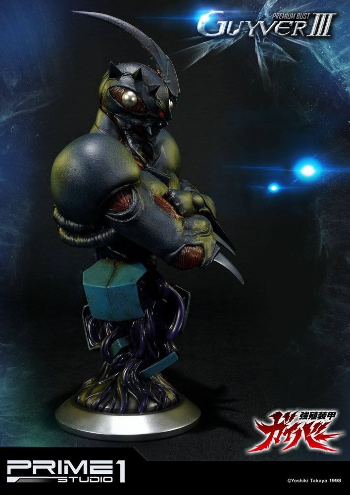 Der Torse der Büste ist im Vergleich zur Ultimate Edition (P1SUPMGV-04UT) NICHT mit der separat erhältlichen Guyver III Statue kompatibel.