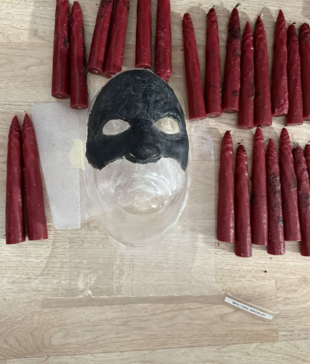 Production Made: Insidious – The Red Door „Lipstick Demon Appliance – Molted Face & Kerzen“ Production Made Back-Up Prosthetic
