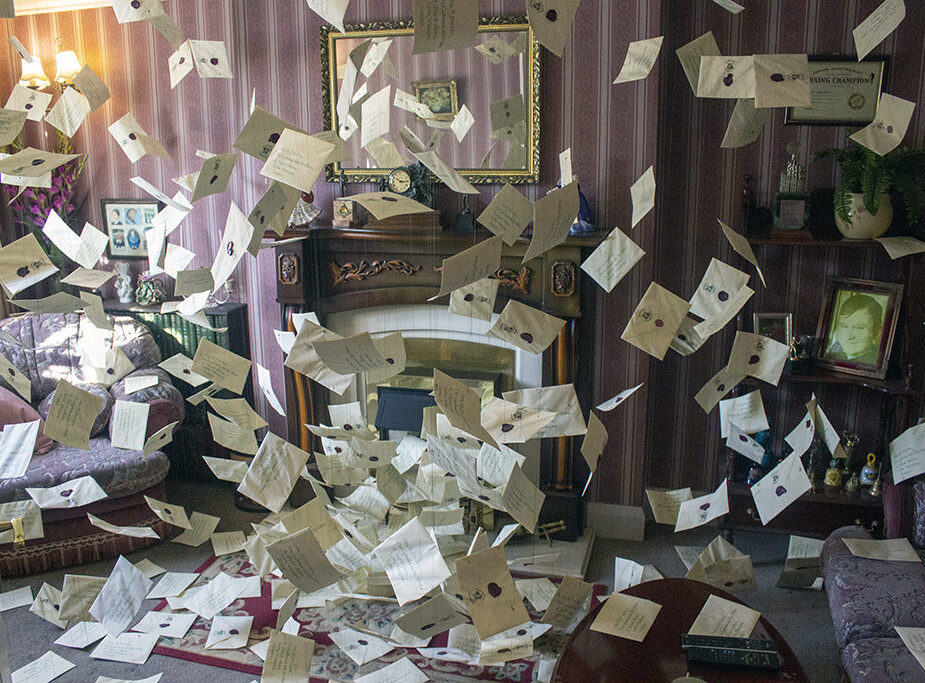 Trotz Onkel Vernons (Richard Griffiths) aller Bemühungen, wurde das Haus der Dursleys von Eulenpost überschwemmt, die Potter über seine Zulassung nach Hogwarts informierte.