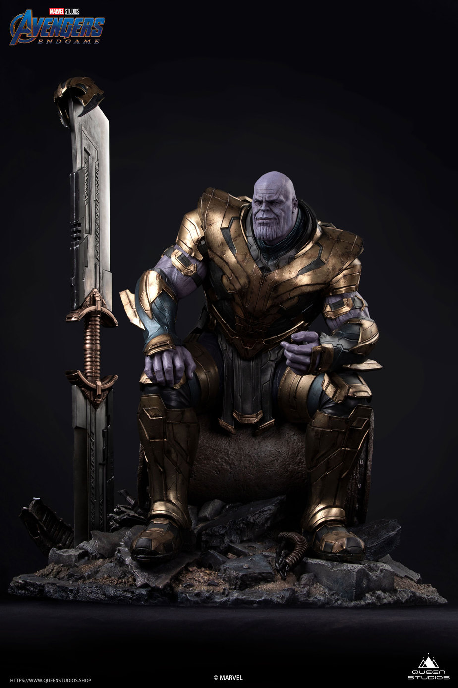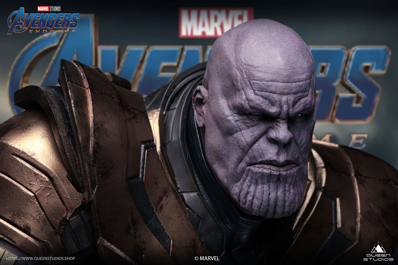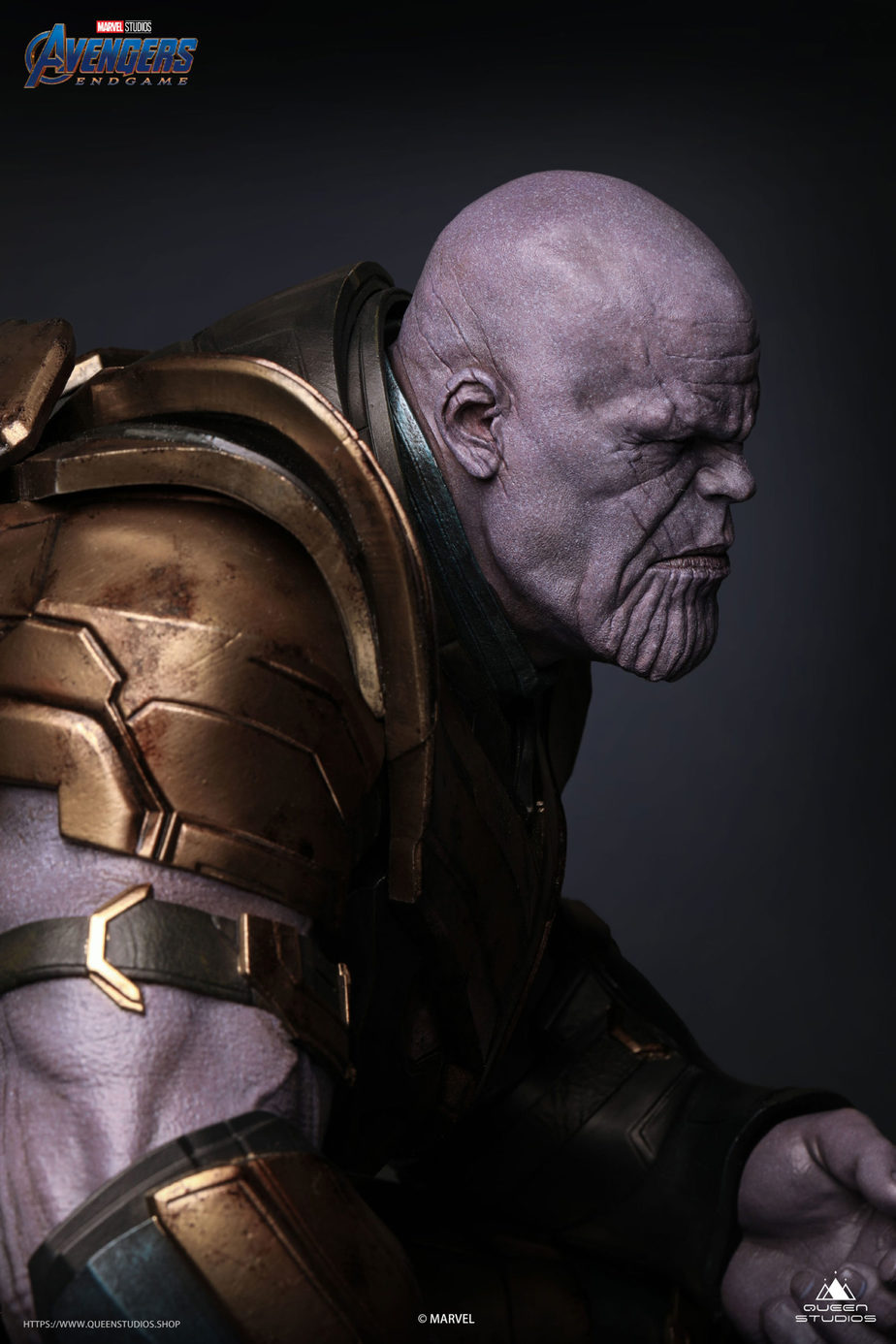 Queen Studios präsentiert stolz ihr neustes Meisterwerk von Thanos aus dem Blockbuster „Avengers Endgame“. Eine Version der Statue zeigt Thanos, tief in Gedanken versunken mit einem ernsten Ausdruck im Gesicht. Die Premium Version kommt mit einem 2ten Portrait, welche diese rare Sekunde des Titanen mit seinem ironischen Lächeln zeigt.