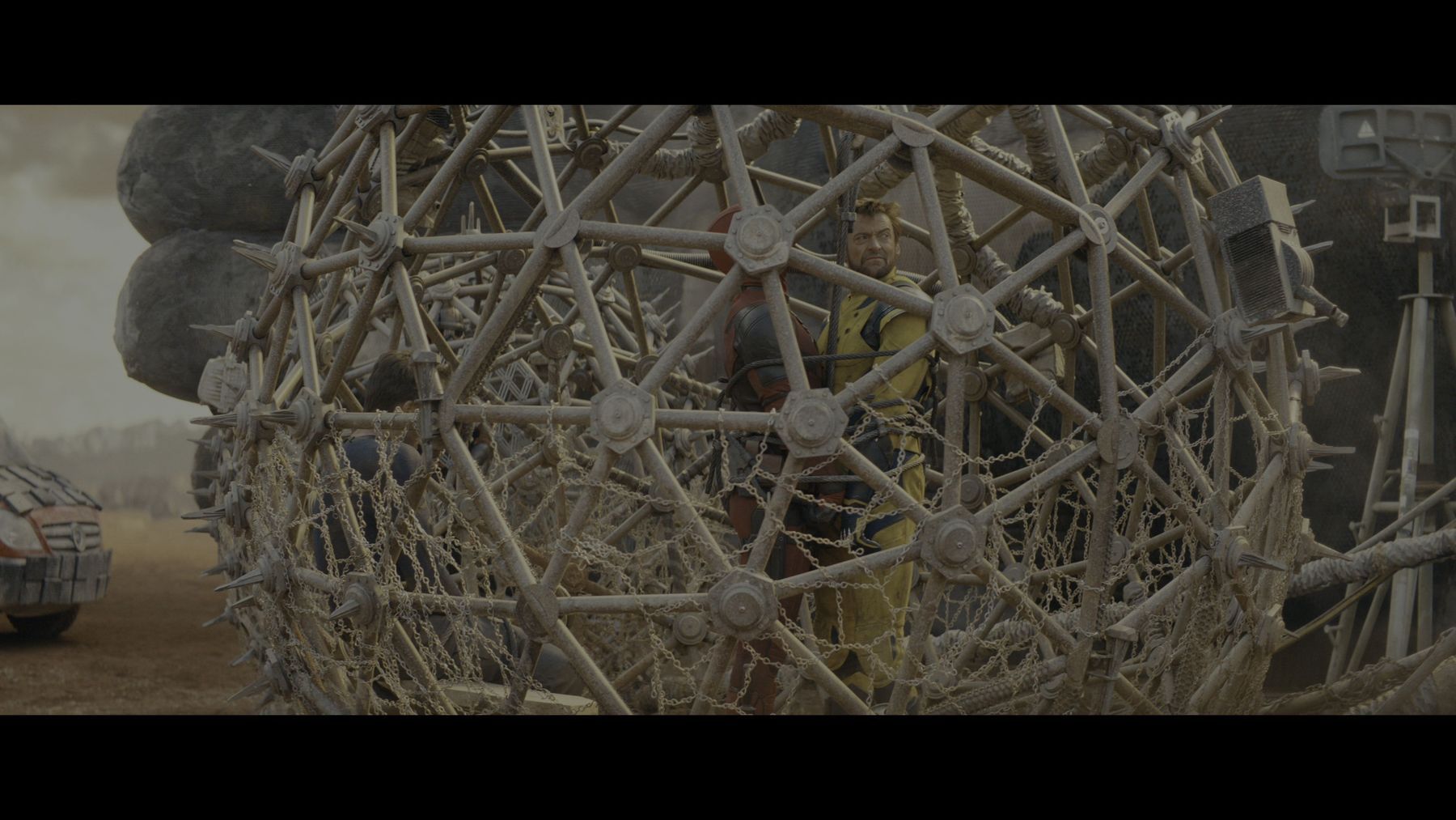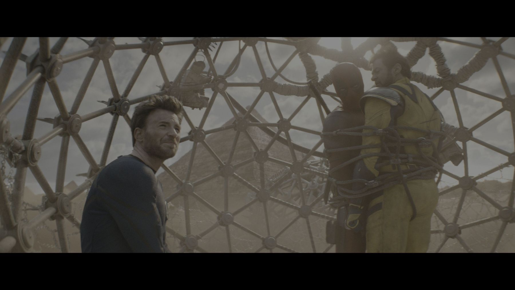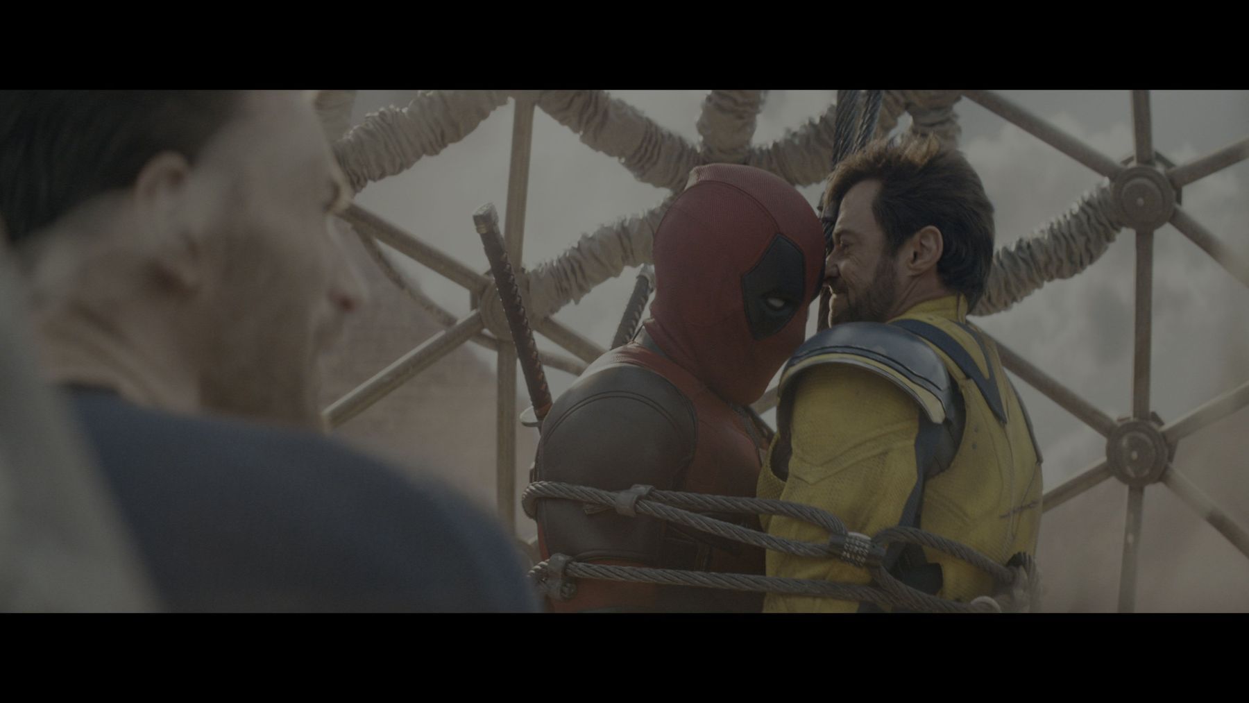 Wolverine (Hugh Jackman), Deadpool (Ryan Reynolds) und Johnny Storm (Chris Evans) wurden in einer Gefängniszelle gefesselt, als sie zurück zu Cassandra Novas (Emma Corrin) Basis transportiert wurden.