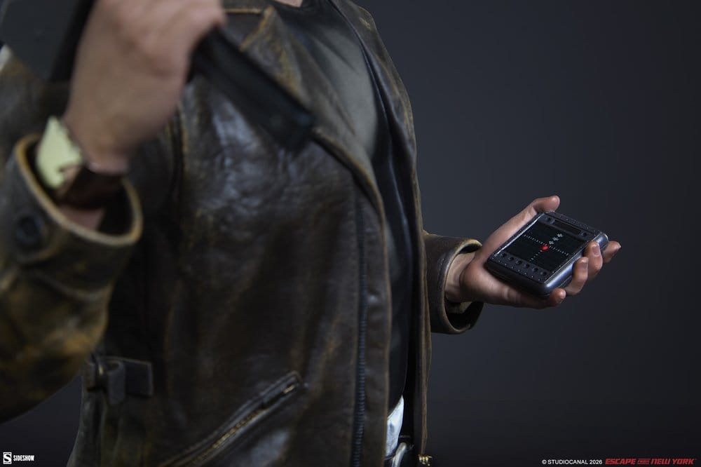 Die Snake Plissken Premium Format™ Figur ist mit einer detaillierten Nachbildung seines robusten 80er-Jahre-Stils modelliert, einschließlich seiner Jacke, seines schwarzen Unterhemds, seiner grau-weißen Camouflage-Hose und seiner Stiefel mit Stachelspitzen. Natürlich ging Snake nicht unvorbereitet hinein – die Statue verfügt auch über seinen Gürtel und seine Pistolenhalfter, einen Tracker in seiner linken Hand, eine Maschinenpistole mit Schalldämpfer und Zielfernrohr (weicher Stoffriemen inklusive) in seiner rechten Hand und den Life-Clock-Countdown-Timer an seinem Handgelenk, um sicherzustellen, dass er bei der Sache bleibt. Ein detailliertes Porträt vervollständigt seine ikonische Silhouette mit einer Augenklappe, einer Zigarette, Gesichtsbehaarung und einer gestylten Vokuhila-Frisur, alles bereit für den Einsatz.