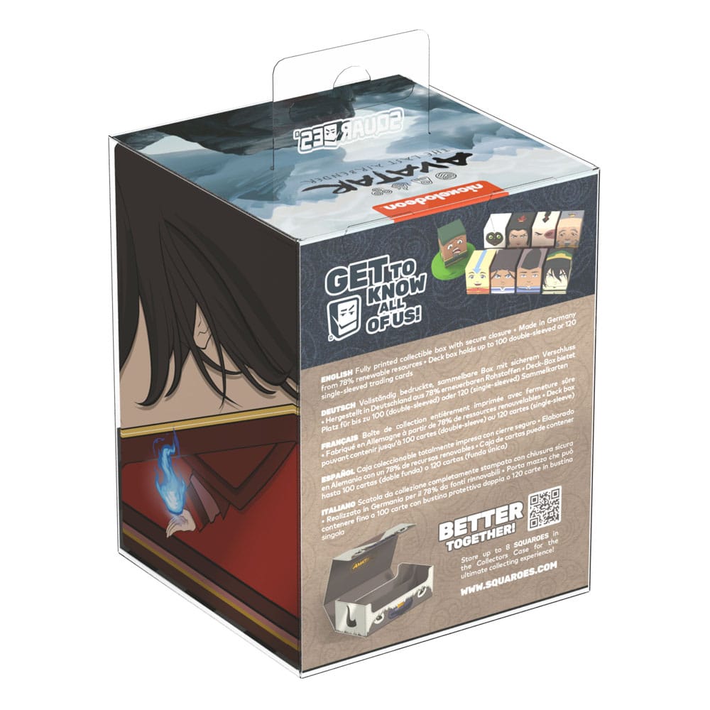 Sammelbare Box zur Aufbewahrung von TCG-Decks, Tabletop-Zubehör und/oder Sammlerstücken. Der Azula Squaroe aus der Avatar: The Last Airbender™-Edition bietet als Deck-Box benutzt Platz für bis zu 100 Spielkarten in doppelter Schutzhülle. Squaroes werden aus 78% erneuerbaren Rohstoffen hergestellt und passen perfekt in das separat erhältliche Collectors Case.