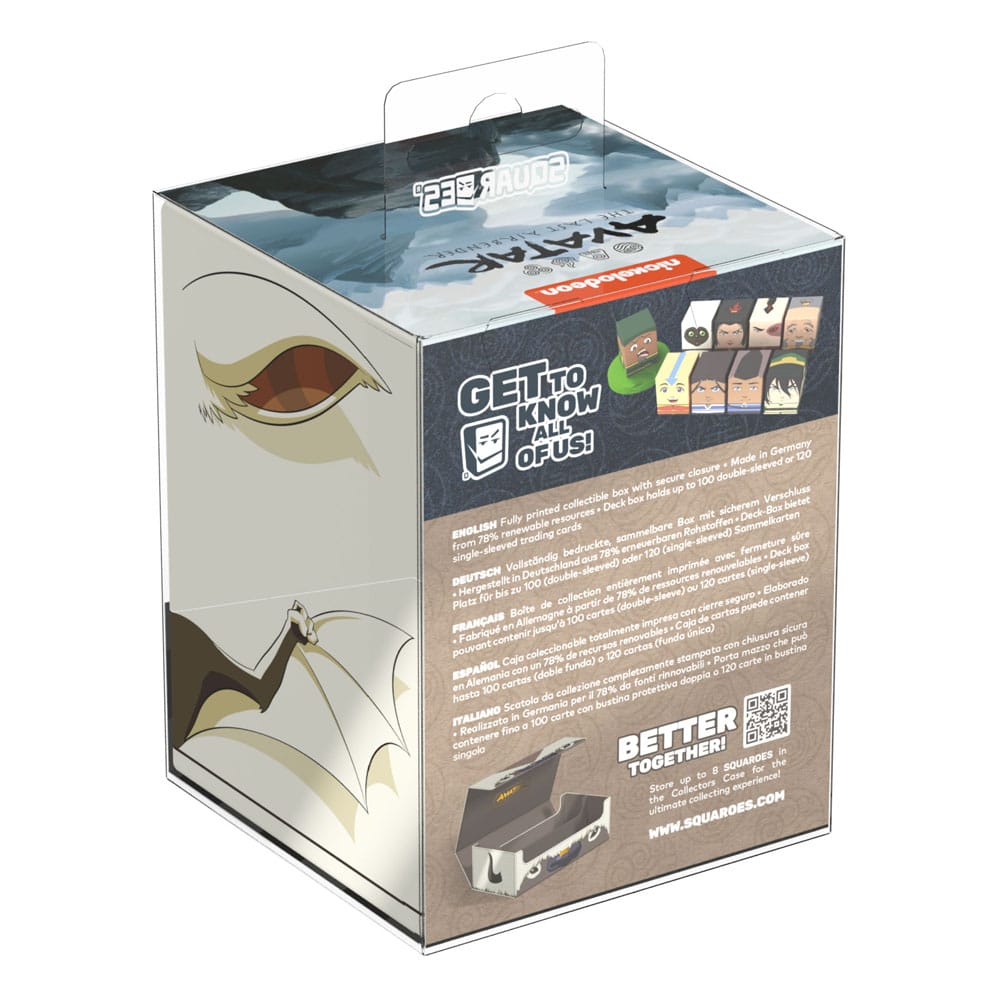Sammelbare Box zur Aufbewahrung von TCG-Decks, Tabletop-Zubehör und/oder Sammlerstücken. Der Momo Squaroe aus der Avatar: The Last Airbender™-Edition bietet als Deck-Box benutzt Platz für bis zu 100 Spielkarten in doppelter Schutzhülle. Squaroes werden aus 78% erneuerbaren Rohstoffen hergestellt und passen perfekt in das separat erhältliche Collectors Case.