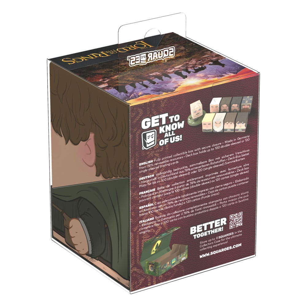 Sammelbare Box zur Aufbewahrung von TCG-Decks, Tabletop-Zubehör und/oder Sammlerstücken. Der Sam Squaroe aus der The Lord of the Rings-Edition bietet als Deck-Box benutzt Platz für bis zu 100 Spielkarten in doppelter Schutzhülle. Squaroes werden aus 78% erneuerbaren Rohstoffen hergestellt und passen perfekt in das separat erhältliche Collectors Case.