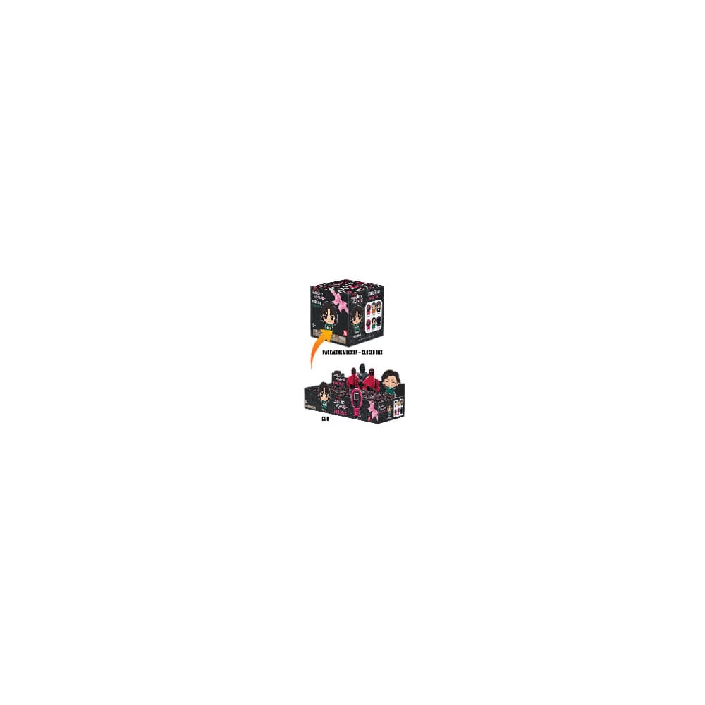 Zu Squid Game kommt dieses Display mit 12 Minifiguren zum Sammeln. Jede Figur ist ca. 6 cm gross und wird in einer Blind Box geliefert.