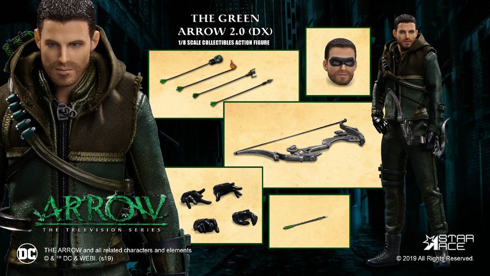 Zur TV-Serie „Arrow“ kommt diese großartige Actionfigur im Maßstab 1/8 aus Star Ace Toys‘ „Real Master Series“-Reihe. Sie ist ca. 23 cm groß, trägt echte Stoffkleidung und wird mit weiterem Zubehör und Austauschteilen in einer Fensterbox geliefert.