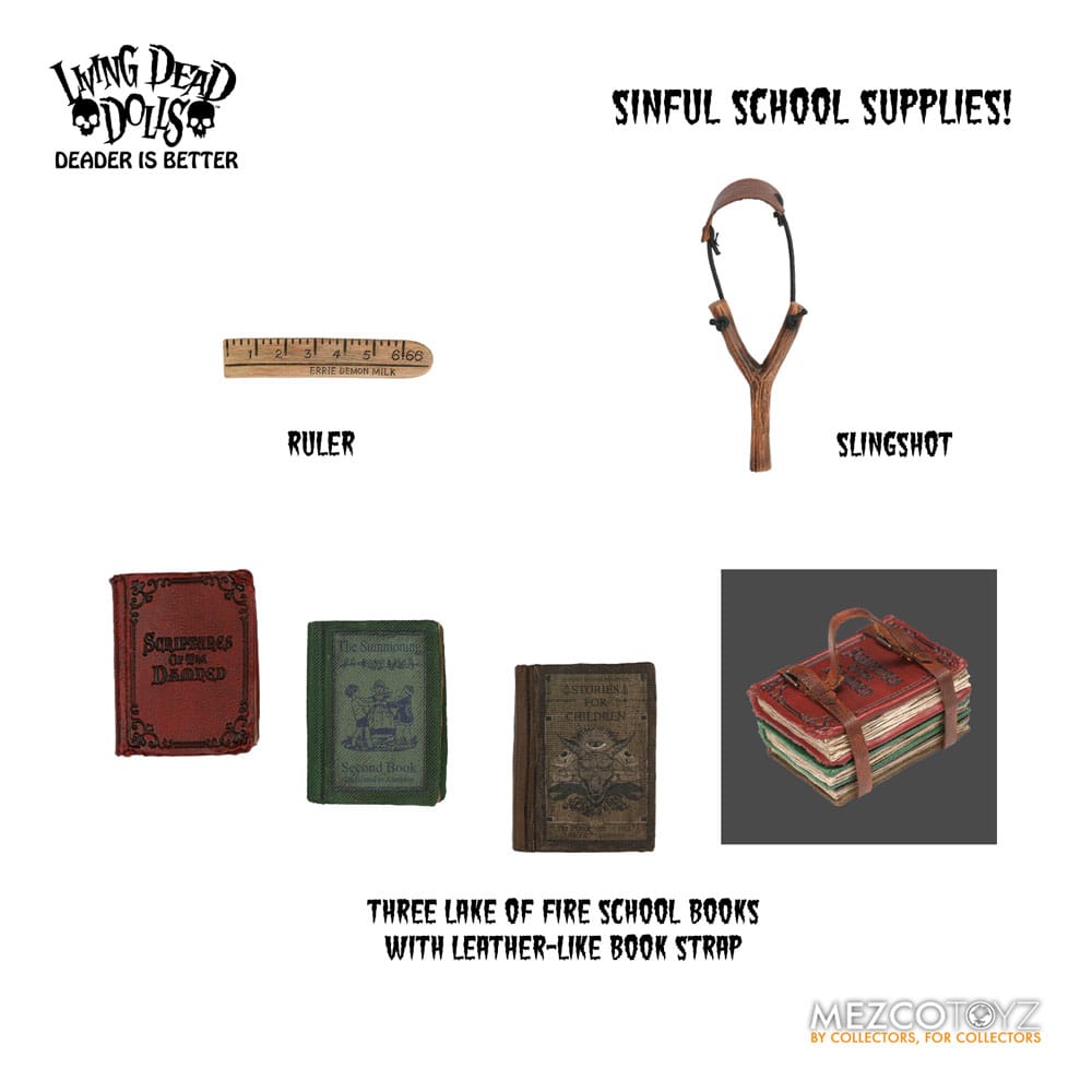 Aus Mezcos beliebter Living Dead Dolls Serie kommt diese grossartige Puppe. Sie ist ca. 25 cm gross, trägt echte Stoffkleidung und wird in einer Fensterbox geliefert.