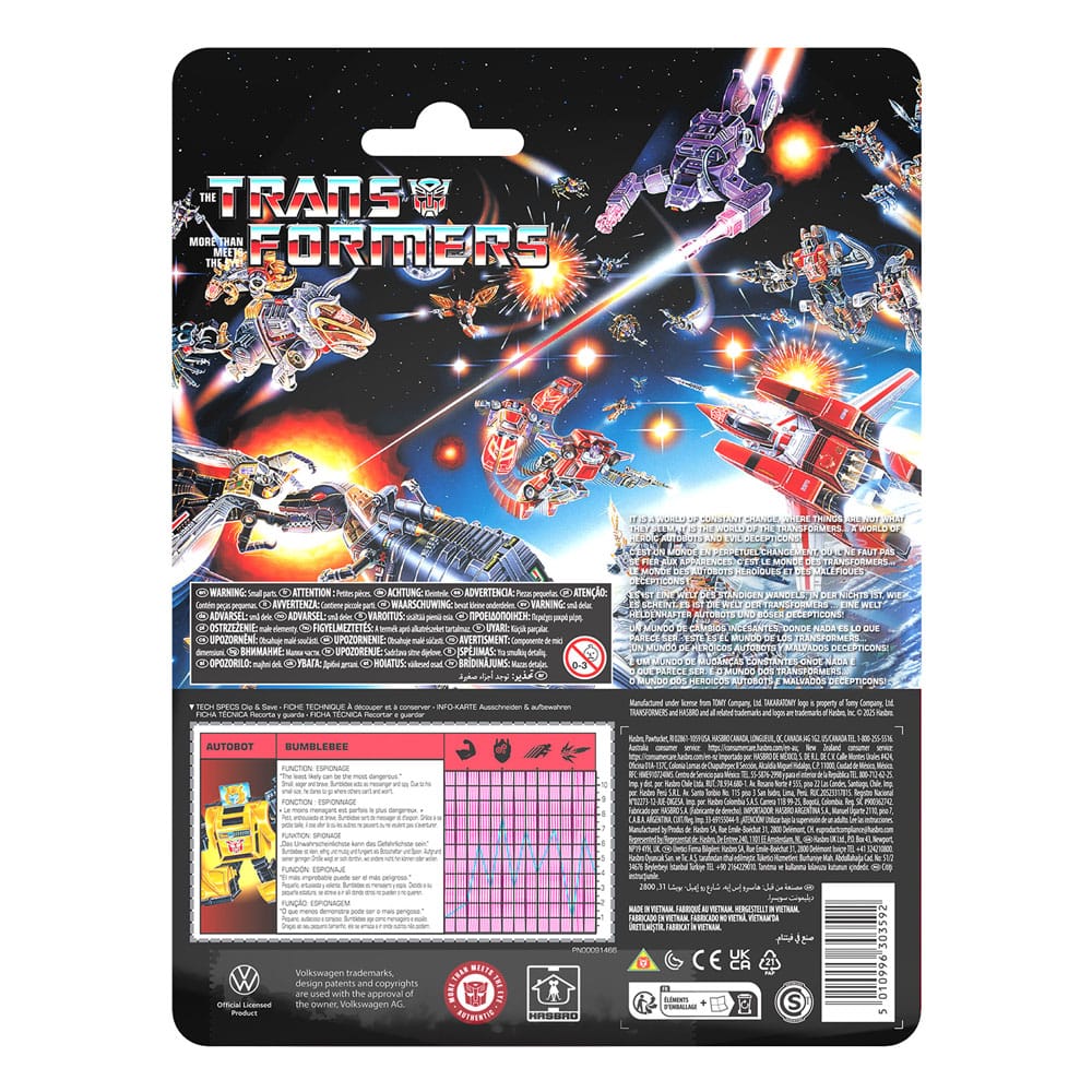 Mit dem Transformers Retro Autobot Bumblebee Spielzeug können die Fans die Nostalgie der beliebten G1 Action-Figuren neu erleben! Dieses Vintage G1 Autobot Bumblebee Spielzeug ist von retro G1 Verpackung inspiriert. Bumblebee ist klein, eifrig und mutig und fungiert als Botschafter und Spion. Aufgrund seiner geringen Grösse wagt er sich dorthin, wo andere nicht hin können oder wollen. Transformers Retro G1 Action-Figuren warten im Vintage-Stil mit Accessoires und exklusivem Verpackungsdesign und Info-Karten auf. Die Info-Karte auf der Verpackung kann ausgeschnitten und aufbewahrt werden, um sie zu vergleichen und dann zu sehen, wie diese Figur im Vergleich zu anderen heldenhaften Autobots und bösen Decepticons abschneidet. Jeweils separat erhältlich, je nach Verfügbarkeit.