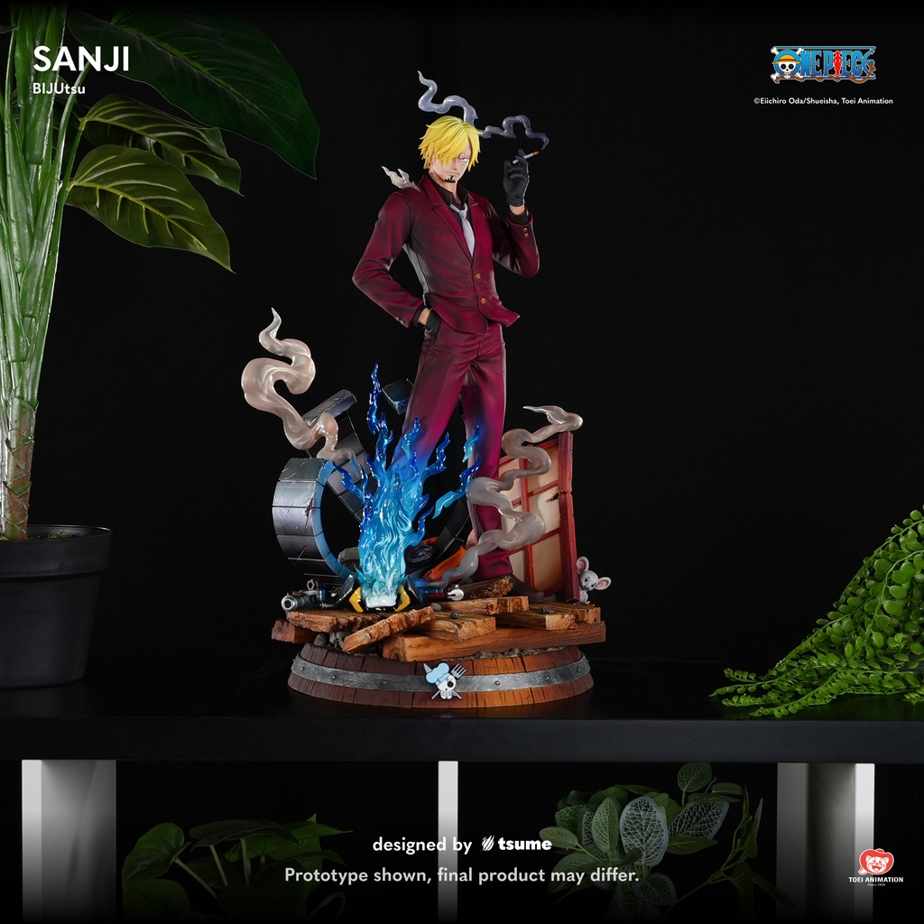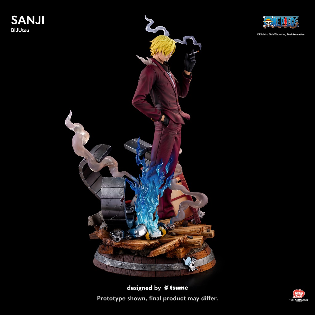 Tsume Art präsentiert stolz diese detailreiche Statue von Sanji aus dem Anime „One Piece“. Das aus hochwertigem Polyresin hergestellte Sammlerstück im Maßstab 1/6 ist ca. 34 x 32 x 57cm groß und wird mit ansprechender Base, styropor-geschützt, in einem bedruckten Karton geliefert.
