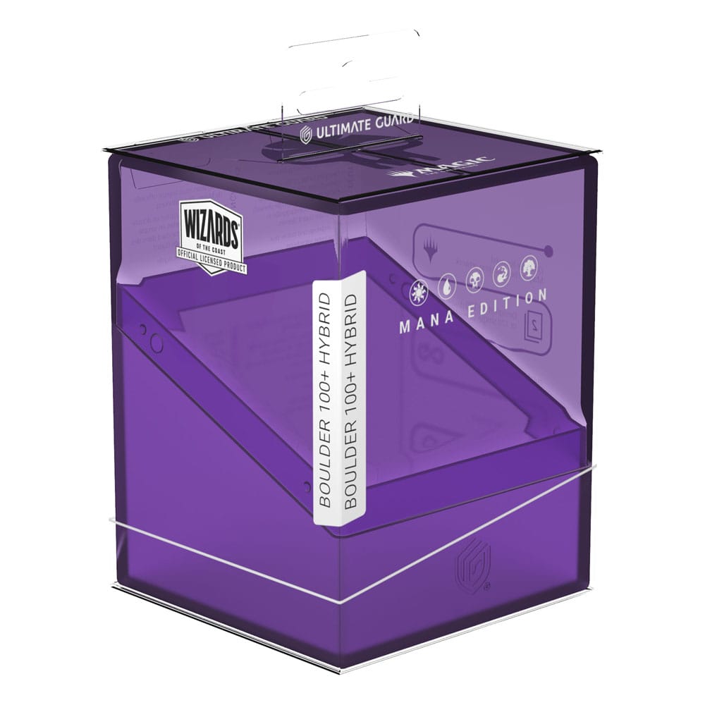 Ultimate Guards Boulder 100+ Hybrid verbindet den komplett transparenten Deckel des Boulder Clear mit einem Soft-Touch-Unterteil im Stil des originalen Boulders. Die offiziell lizenzierte MTG-Deck-Box lässt sich bequem öffnen, bietet aber dank eines stabilen Gehäuses und sicheren Verschlusses zuverlässigen Schutz für eure Karten. Der Boulder 100+ Hybrid fasst bis zu 100 Karten in doppelter Schutzhülle und ist für alle Magic: The Gathering-Formate wie z.B. Commander, Standard oder Modern geeignet.