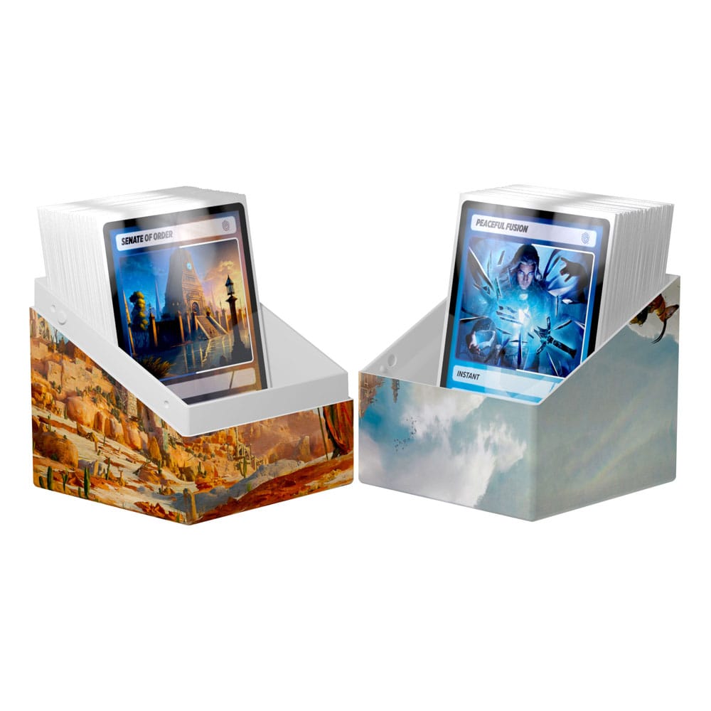 Die Motive der Artist Edition #2 wurden von Künstler Mario Renaud geschaffen und sind nicht nur als RTE Boulder 100+, sondern auch als Play-Mat und Collector’s Album’n’Case erhältlich. Die Deck-Box bietet Platz für 100 (double-sleeved) oder 120 (single-sleeved) Karten von Spielen wie Magic: The Gathering, Pokémon oder Lorcana. Als Teil unserer Return to Earth-Serie besteht der Boulder aus 78% erneuerbaren Rohstoffen. Die Deck-Box wird in Deutschland hergestellt und besitzt einen beständigen und strahlenden Vollfarbdruck.