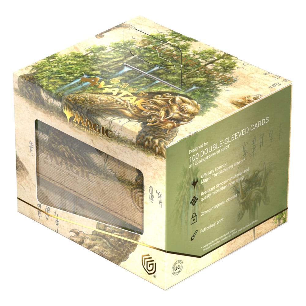 Der Sidewinder 100+ aus widerstandsfähigem Xenoskin-Material fasst bis zu 100 doppelt gesleevte Karten, die dank eines starken Magnetverschlusses und der schonenden Mikrofaser-Innenseite sicher in der Deck-Box aufgehoben sind. Die hochwertige Xenoskin-Oberfläche des Sidewinders ist vollfarbig mit offiziell lizenzierten Artworks aus dem Magic: The Gathering | Avatar: The Last Airbender-Set bedruckt.