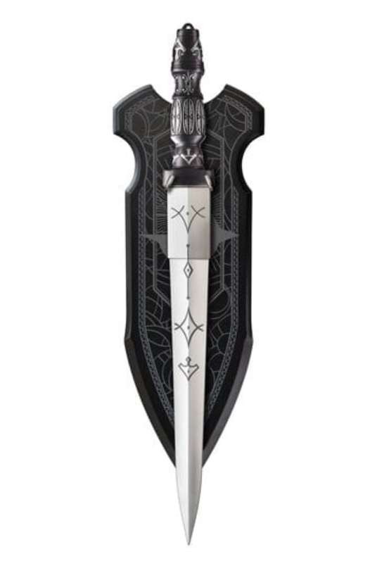 Die Replik der Emperor’s Blade von United Cutlery ist eine exakte Reproduktion des tatsächlichen Requisits aus den Dune-Filmen. Die 38,74cm lange Klinge aus rostfreiem Stahl ist mit kaiserlichen Symbolen graviert. Der Griff aus Gussmetall ist schwarz beschichtet mit aufwendigen erhabenen Silberverzierungen und entspricht genau dem Requisit. Diese atemberaubende Reproduktion wird auf einem hölzernen Wanddisplay präsentiert, das mit dem Wappen des Hauses Harkonnen geschmückt ist. Der Emperor’s Blade liegt auch ein Echtheitszertifikat bei, um den Kunden ihren Wert und ihren offiziellen Lizenzstatus zu versichern.