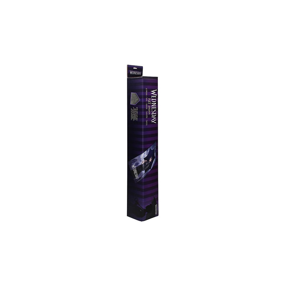 Tauchen Sie ein in die geheimnisvolle Welt von Wednesday mit dieser 80 x 60 cm grossen Fussmatte für den Innenbereich, die mit einem stilvollen, dunklen Regenschirm-Design verziert ist.