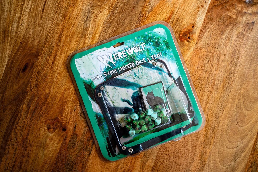 Bereichere dein Werwolf-Erlebnis mit dem Luna’s Fury Limited Dice & Tray Accessory Pack. Die mehrfarbigen Würfel und das vollfarbige Würfeltablett erinnern an den Geist und das Fell der Garou. Die 5 Formkarten helfen dir und deiner Truppe, Glabrou von Crinos zu unterscheiden und erinnern dich daran, was jede Form kann.